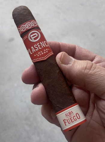 The Plasencia Alma del Fuego is a well crafted medium cigar with a dark wrapper and a closed foot. The wrapper is Ecuador Habano (one of my favorite) and binders and fillers from Nicaragua. The pre-lighting aroma is a sweet cedar with a touch of cocoa. I found after lighting that it burned even, with a very smooth draw. The flavors ranged from earthy, nutty and caramel. The retrohale had a little bit of pepper. At the midpoint of the ciga,r more of the sweetness came through along with coffee and chocolate. The cigar finished with a nice mild espresso flavor and aroma. The cigar smoked for close to 90 minutes and ranks with one of the best cigars I have smoked this year.